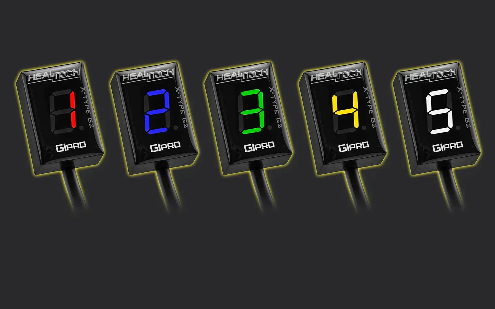 Next generation motorbike gear indicator with all the latest tech. Touch control, auto brightness, high speed warning and shift light function – all in a neat package. Extra bright LED, 5 display colours to choose from. And on top of that, this is the most compatible of all GIpros. Meet the all new X-type!