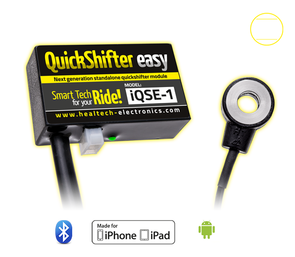 The iQSE is the only quickshifter module on the market which utilizes Bluetooth technology and iOS + Android app for setup and verification. Can even be disabled with a few taps to restore factory condition e.g. for servicing the bike.