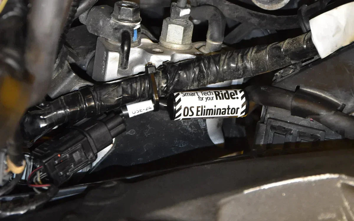 The OS Eliminator enables the disconnection of the factory oxygen sensor (lambda probe) from the motorcycle’s main wiring harness without getting an FI error code.