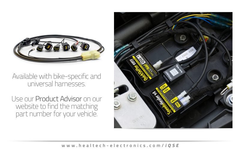 The iQSE is the only quickshifter module on the market which utilizes Bluetooth technology and iOS + Android app for setup and verification. Can even be disabled with a few taps to restore factory condition e.g. for servicing the bike.