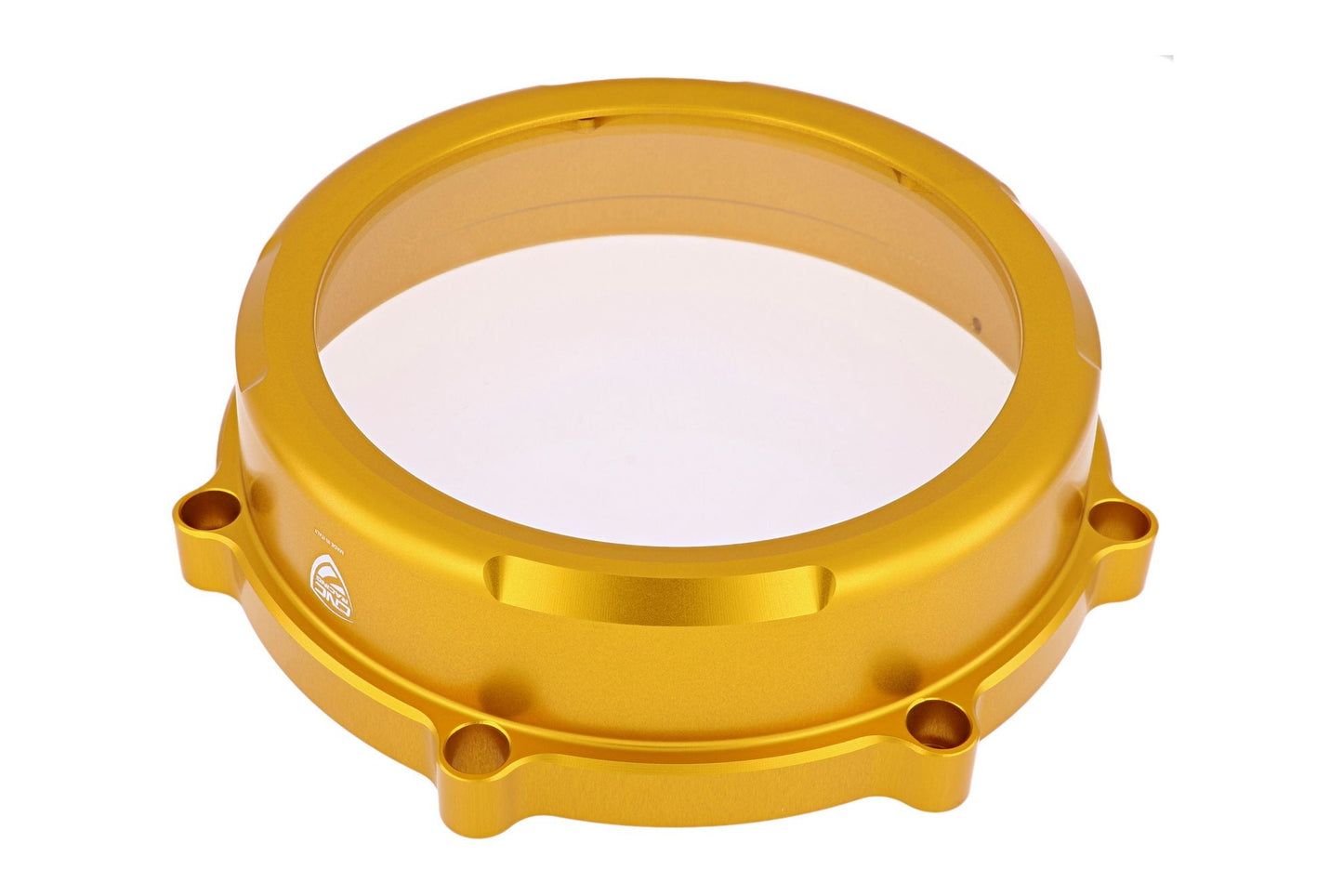 Clear cover for Ducati dry clutch made in light alloy, machined from solid and then anodized.