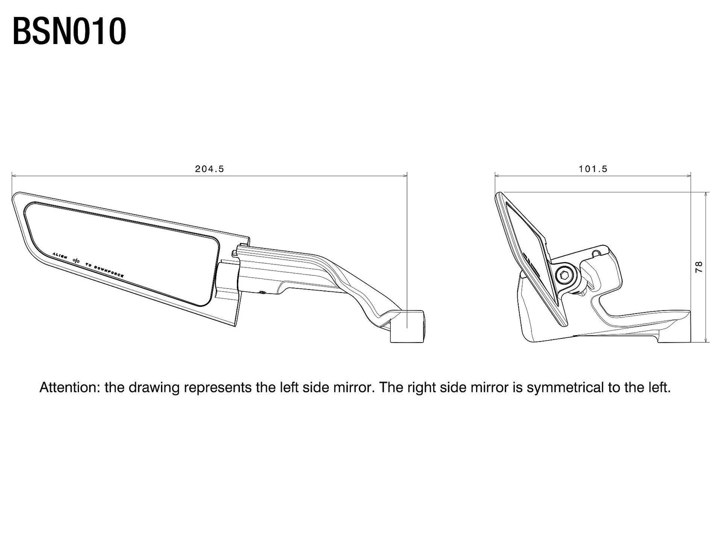 Rizoma's ground breaking Stealth mirror was originally released for selected sports bikes. Now it is available for naked bikes too! It consists of a fixed part, an adapter, designed specifically for the bikes' mirror mounts, and a movable part which acts as a mirror glass holder. Thanks to a rotating system with a simple twist the two parts get aligned: in the closed position the mirror becomes an aerodynamic foil.