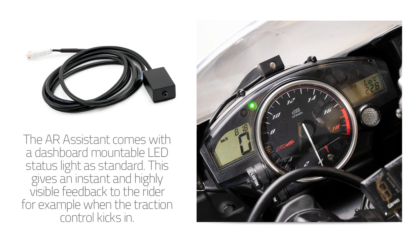 Consider the AR Assistant a rider guardian angel! The ARA is a complete safety package in one tiny box, which may be installed on a wide range of street and track/race bikes that do not have factory-equipped safety features.